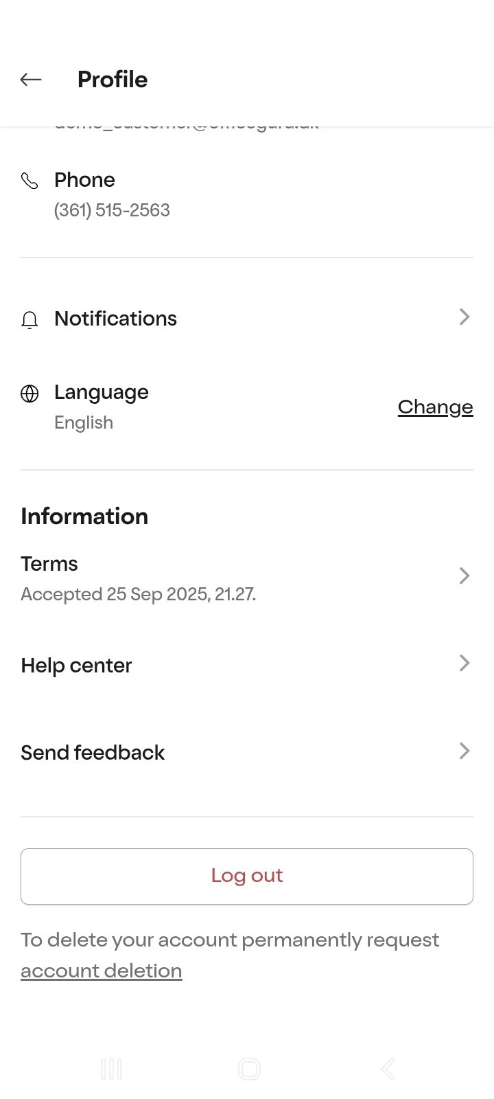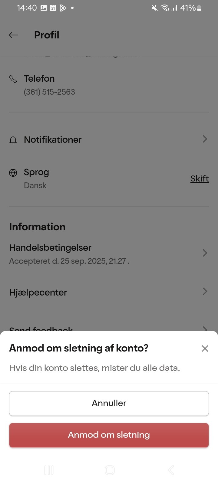 Når du er logget ind kan du under "Profil" anmode om "konto sletning". Anmodningen håndteres hurtigst muligt og du vil modtage en status fra vores Customer Succes team med en status på din anmodning.