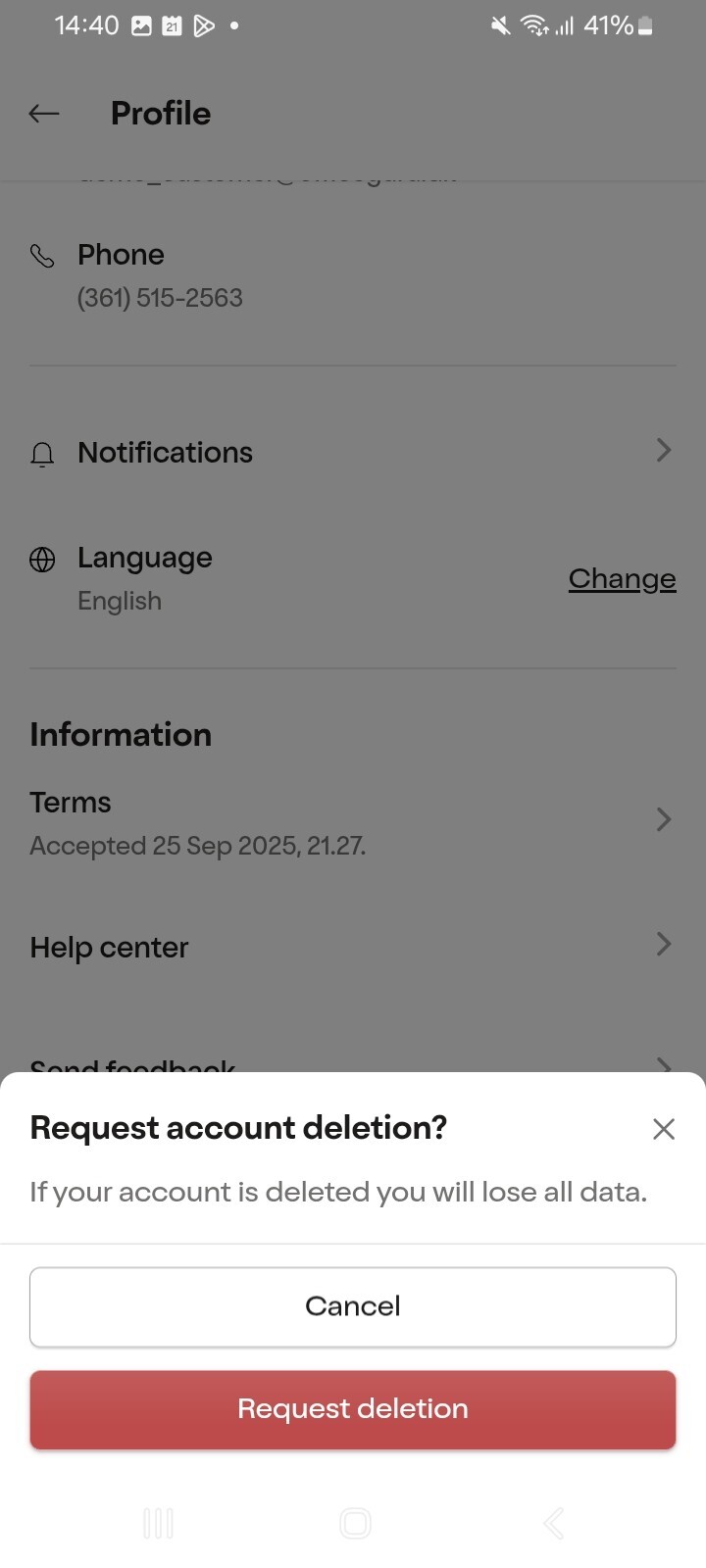 Once logged in, go to “Profile” and select “Delete account”. Your request will be processed as soon as possible, and our Customer Success team will update you on the status of your request.