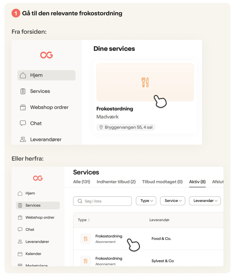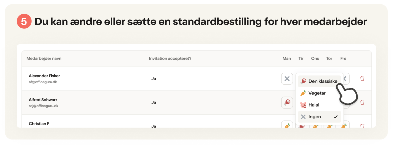 Du kan både ændre, hvilke dage medarbejderen får frokost, og hvilken type mad der bestilles.