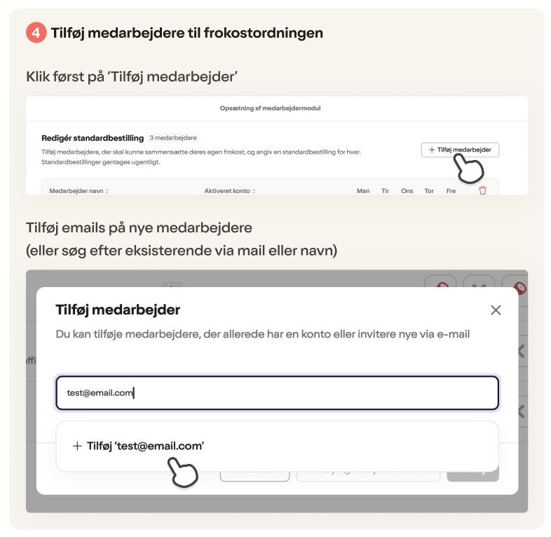 Sådan aktiverer du medarbejdermodulet den første gang og sætter medarbejdernes standardbestillinger